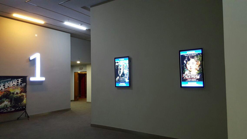 遂寧某電影院,為打造不一樣的看電影氛圍,宣傳新電影及電影上映時間等,新視銳根據(jù)客戶需求,采用一批豎式42寸廣告機,安裝在去往各個電影院內(nèi)部走廊倆邊的墻面上的方案。通過廣告機播放著當(dāng)日要播放的電影簡介以及大力宣傳即將上映的各種大片,為廣大喜愛電影的青年男女們可以提前做好選擇。